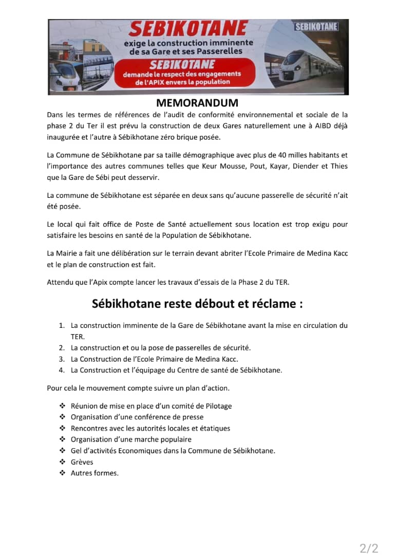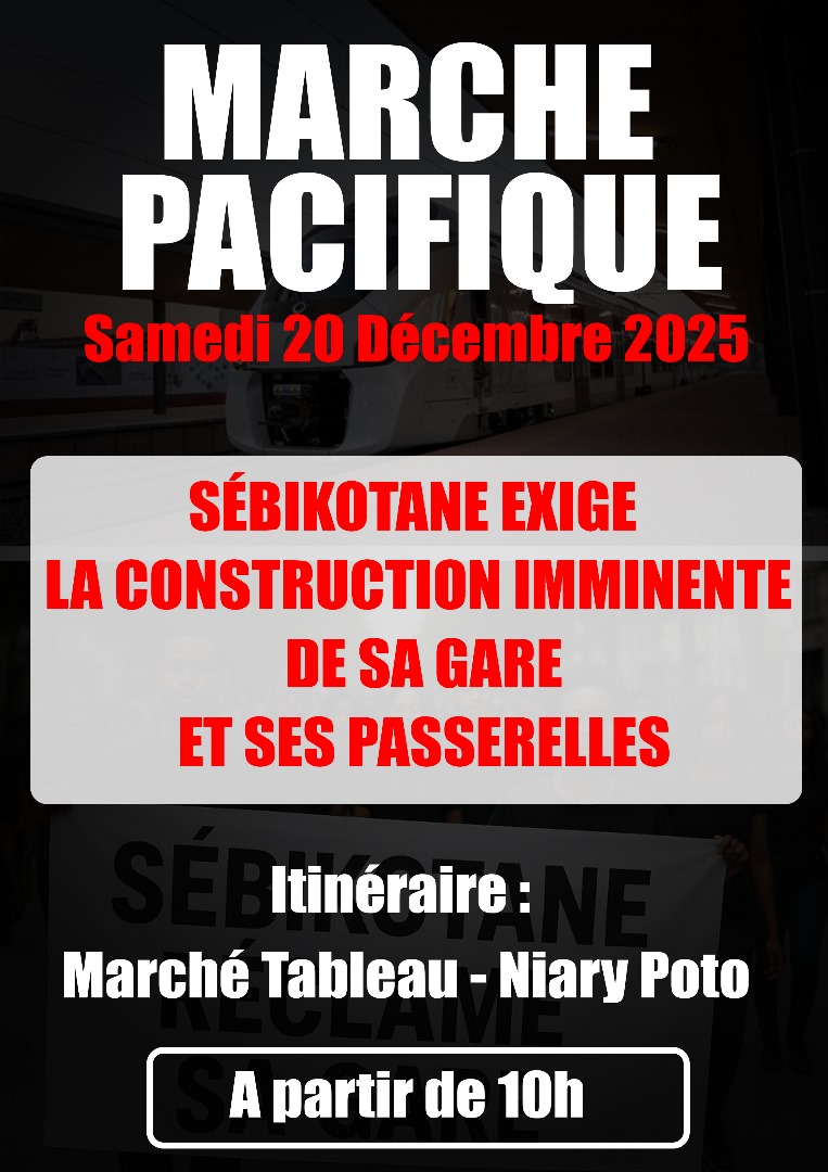 "Pas de Gare, Pas de TER", les habitants de la Commune de Sébikotane organisent une marche pacifique pour exiger ka construction sans délai de la gare de Sébikotane, La construction du Centre de Santé de Sébikotane et des passerelles.